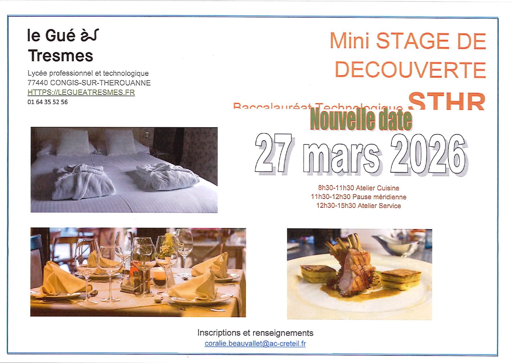 Afin de planifier au mieux ces stages, nous vous remercions de bien vouloir envoyer votre demande par mail ce.0772247z@ac-creteil.fr avant le 15 janvier 2026 en précisant :